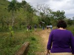 Es un sendero que te hace sentir en plena selva visualmente, pero no es tan extrema que llegas totalmente exhausto a la primera cueva. En su mayoria el camino es plano, pero si resbaloso, ya que es un bosque humedo donde llueve casi todos los dias. Es casi imposible hacer esta caminata sin ser mojado por lluvia y por ende enlodado un poco. (Les recomiendo cuando hagan esta caminata conseguir un palo que encuentren en el camino y usarlo como apoyo para no caerse. En esta excursión solamente se cayó una persona y estoy sorprendida que no fue Manny.)