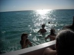 El recorrido que hicimos fue el siguiente: el bote desde Bayahibe nos dejó en el poblado de Mano Juan, donde pudimos pasar un buen rato solos allá, bebiendonos par de traguitos y relajados en el agua, antes que empezaran a llegar las cantidades masivas de turistas con sus actividades planificadas (ejemplo: baile, aerobicos, animación, masajes, etc) yuk! Luego nos montamos en el bote y fuimos a explorar la laguna que está dentro de la Isla. Era muy bonita la vista pero creo que la parte que más atención le llamo a todo el mundo fue cuando un niño que andaba de guia nos trajo dos cabezas de tiburones que encontró en la orilla. Así son nuestros viajes con Explora! siempre nos encontramos con algo inesperado! Otra vez para el bote y en camino al poblado de Cacon para almorzar. Después de un tiempo de descanso y reposo nos fuimos a explorar más profundamente la Isla a traves de sus senderos e ir de Cacon hasta el poblado de Catuano y visitar una pequeña cueva en el lugar. Nos fuimos de Isla Saona con destino a nuestra última parada: la piscina natural! Cerramos con broche de oro. Fue tan divertido parar en el medio del mar y tirarnos un buen rato antes de ir a Bayahibe, montarnos en la guagua y regresar a la capital.