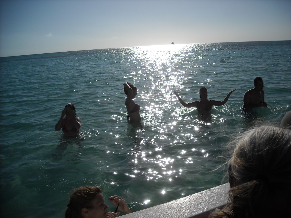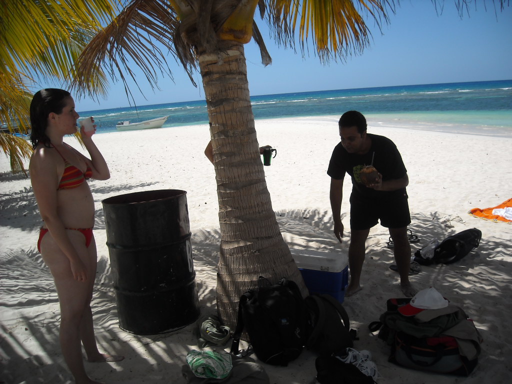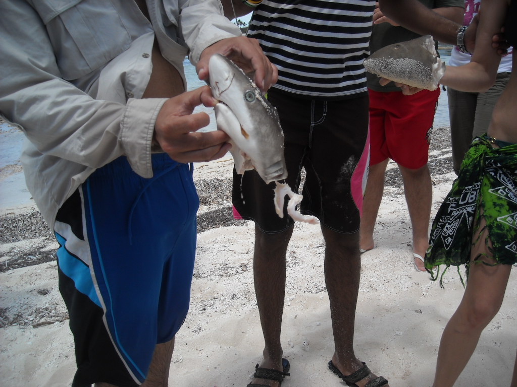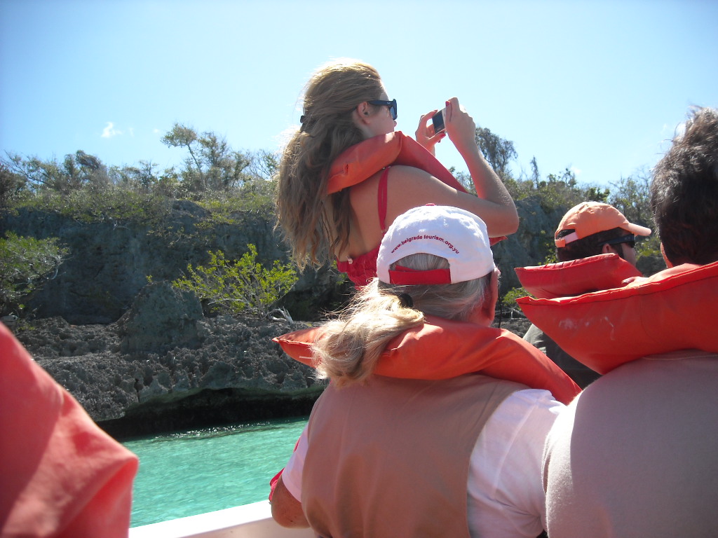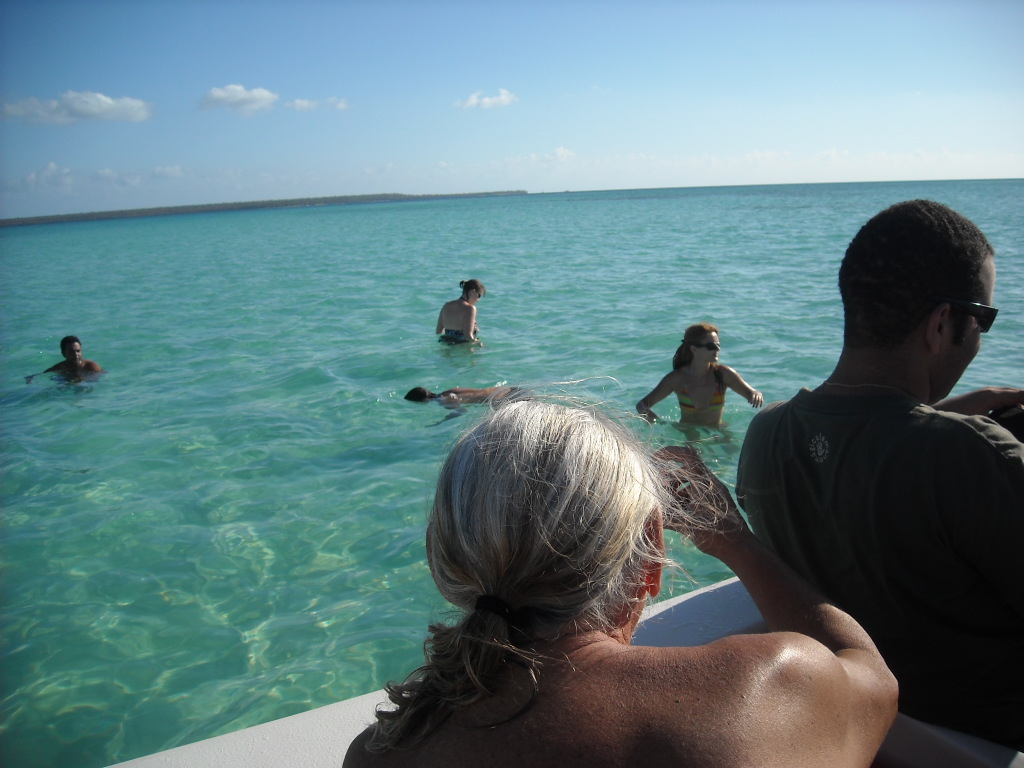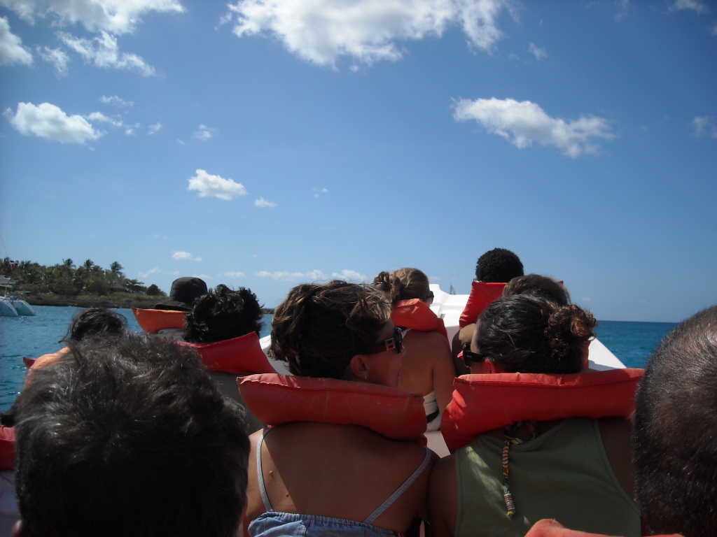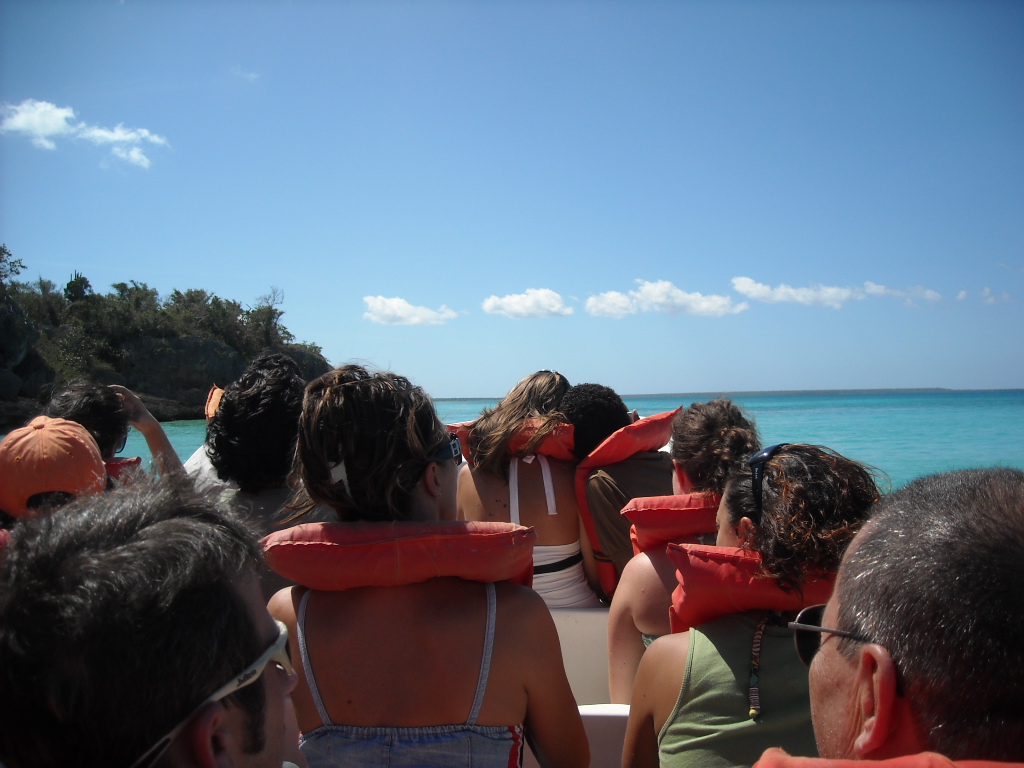 El recorrido que hicimos fue el siguiente: el bote desde Bayahibe nos dejó en el poblado de Mano Juan, donde pudimos pasar un buen rato solos allá, bebiendonos par de traguitos y relajados en el agua, antes que empezaran a llegar las cantidades masivas de turistas con sus actividades planificadas (ejemplo: baile, aerobicos, animación, masajes, etc) yuk! Luego nos montamos en el bote y fuimos a explorar la laguna que está dentro de la Isla. Era muy bonita la vista pero creo que la parte que más atención le llamo a todo el mundo fue cuando un niño que andaba de guia nos trajo dos cabezas de tiburones que encontró en la orilla. Así son nuestros viajes con Explora! siempre nos encontramos con algo inesperado! Otra vez para el bote y en camino al poblado de Cacon para almorzar. Después de un tiempo de descanso y reposo nos fuimos a explorar más profundamente la Isla a traves de sus senderos e ir de Cacon hasta el poblado de Catuano y visitar una pequeña cueva en el lugar. Nos fuimos de Isla Saona con destino a nuestra última parada: la piscina natural! Cerramos con broche de oro. Fue tan divertido parar en el medio del mar y tirarnos un buen rato antes de ir a Bayahibe, montarnos en la guagua y regresar a la capital.