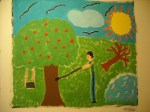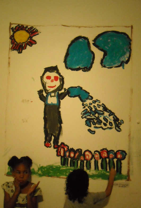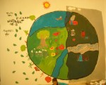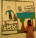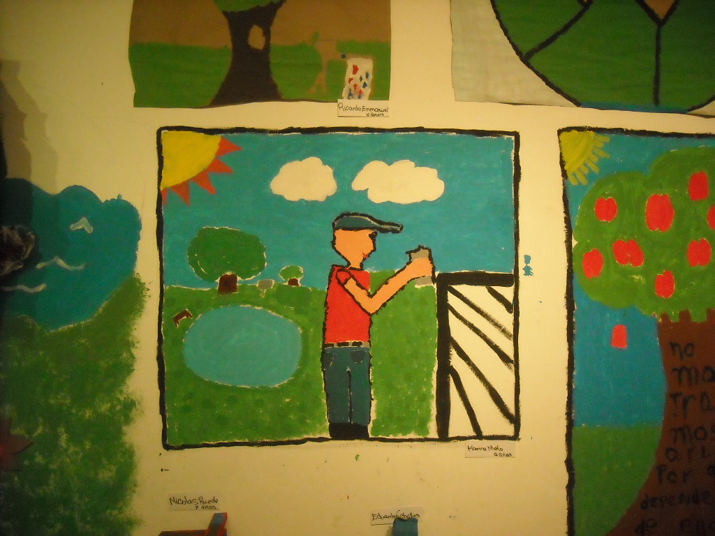 Los participantes eran niños de distintas edades y de distintos niveles sociales y todos lograron crear unas bellas obras y a la vez comunicar un mensaje importante (tal como deben ser las obras de arte a mi entender) sobre la importancia de cuidar y amar al planeta tierra. Lo que más me impresionó fue el hecho que cada idea salio de los propios artistas, entiendase de la mente de los propios niños. Varias obras fueron inspiradas en los arboles y la forma en que los seres humanos las destruyen y las matan cortandolas o talandolas. Pero en definitiva mi favorita fue la obra de un jovencito que decía «El ruido también contamina el medio ambiente», ya que es algo que pienso cada vez que escucho un carro pasar por mi calle y hace más ruido que un avión, cada motor que transita sin el asunto ese que lo hace silencioso, cada carro con su «musicon», etc.
