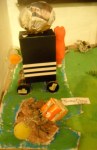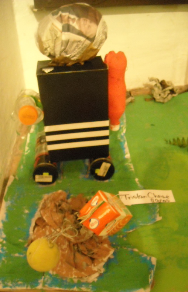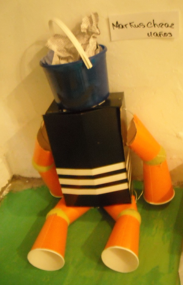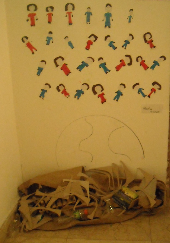 Recientemente estuve en El Centro Cultural de España donde los hijos de una amiga estaban participando en su primera exposición de arte. Para mi grata sorpresa todas las obras de arte estaban hechas con materiales reciclados o para ser un poco más cruda estaban hechas de «basura», pero de una forma no despectiva. Me cuenta la anfitriona y creadora del evento, la artista Kilia Llano, que ella literalmente reunió basura y la tiró en el piso y que habían cosas que entraban dentro de la categoría de basura orgánica (por ejemplo desperdicios de comida) y por ende no se podían utilizar para este proyecto. Luego se pasó por un proceso de depuración allá mismo en el centro para que los niños sacaran los materiales que utilizarían. El tema de esta exposición era el medio ambiente, los niños realizarían obras en grupos e individuales.