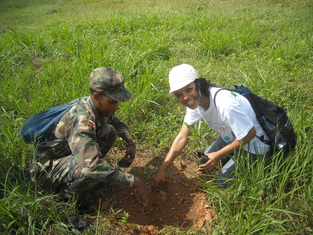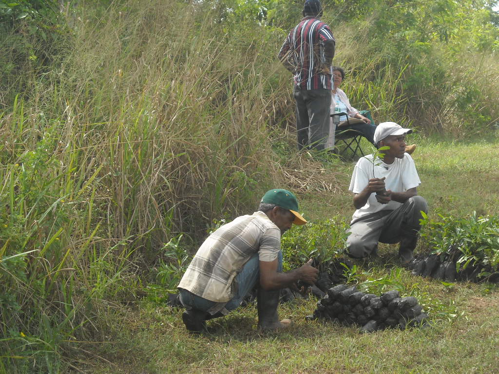 Este pasado sábado, 2 de Octubre, estuvimos sembrando árboles en la cuenca del Rio Ozama, a propósito del Mes de la Reforestación en la República Dominicana. Estuvimos con varios técnicos de la Sec. de Estado de Medio Ambiente y oficiales de la Fuerza Aérea, los cuales estuvieron presente para asistirnos. En equipo, entre nuestro grupo y los oficiales, sembramos 500 árboles de Caoba y Acacia en menos de dos horas. Este en definitiva fue un grupo de trabajadores que en buen dominicano «se fajó» a trabajar. Un grupo dedicado a su país, que no solamente habla pero a la vez actua. Fuimos menos de los que yo imaginaba o deseaba, pero en fin las personas a veces se pierden en su dia a dia o se inventan pretexto para justificar, pero sea con 2, 3, 10 o 20, nosotros seguiremos dedicándonos a cuidar nuestro mayor regalo: la Naturaleza! Disfruten de las imágenes y quizas la próxima vez si se animen! Recuerden que sembrar un árbol es sembrar vida!